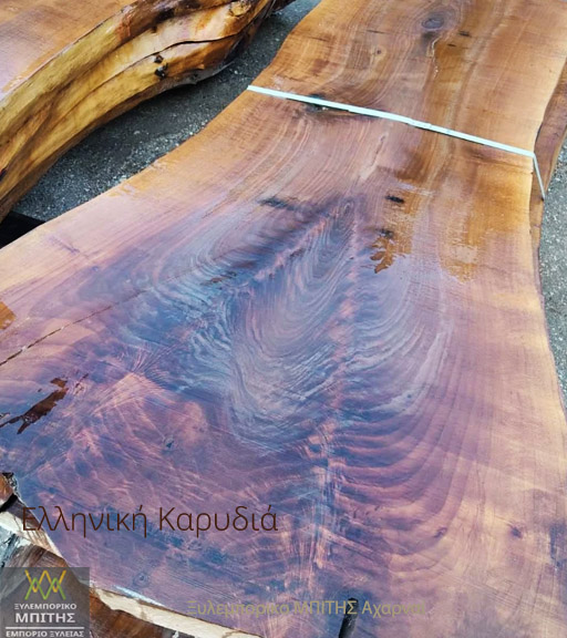 Η Ελληνική καρυδιά είναι ένα σπάνιο ξύλο ιδιαίτερης ομορφιάς με πλούσια νερά ιδανικό για πολυτελή έπιπλα σκελετά και επενδύσεις με μορφή καπλαμά .